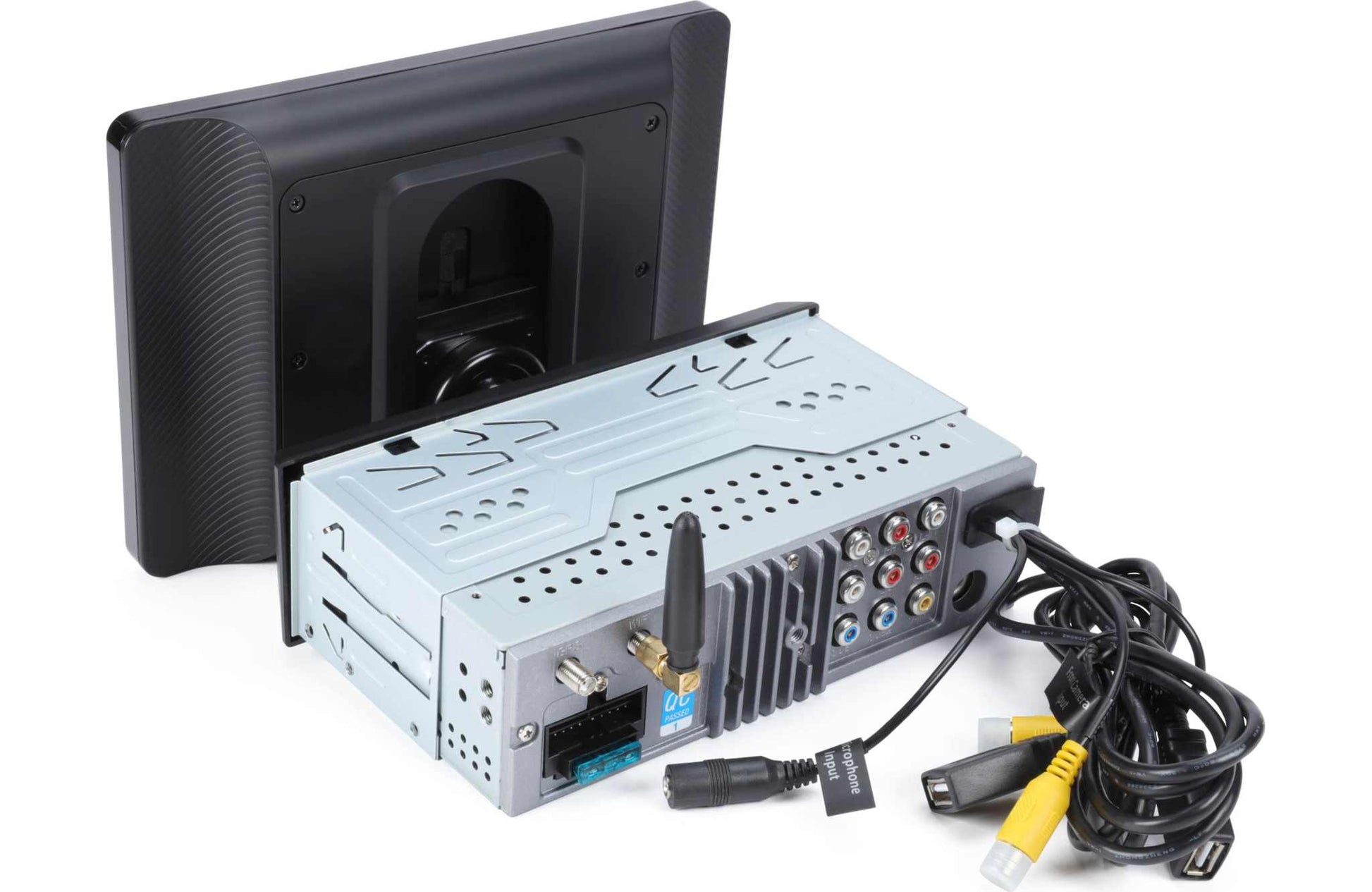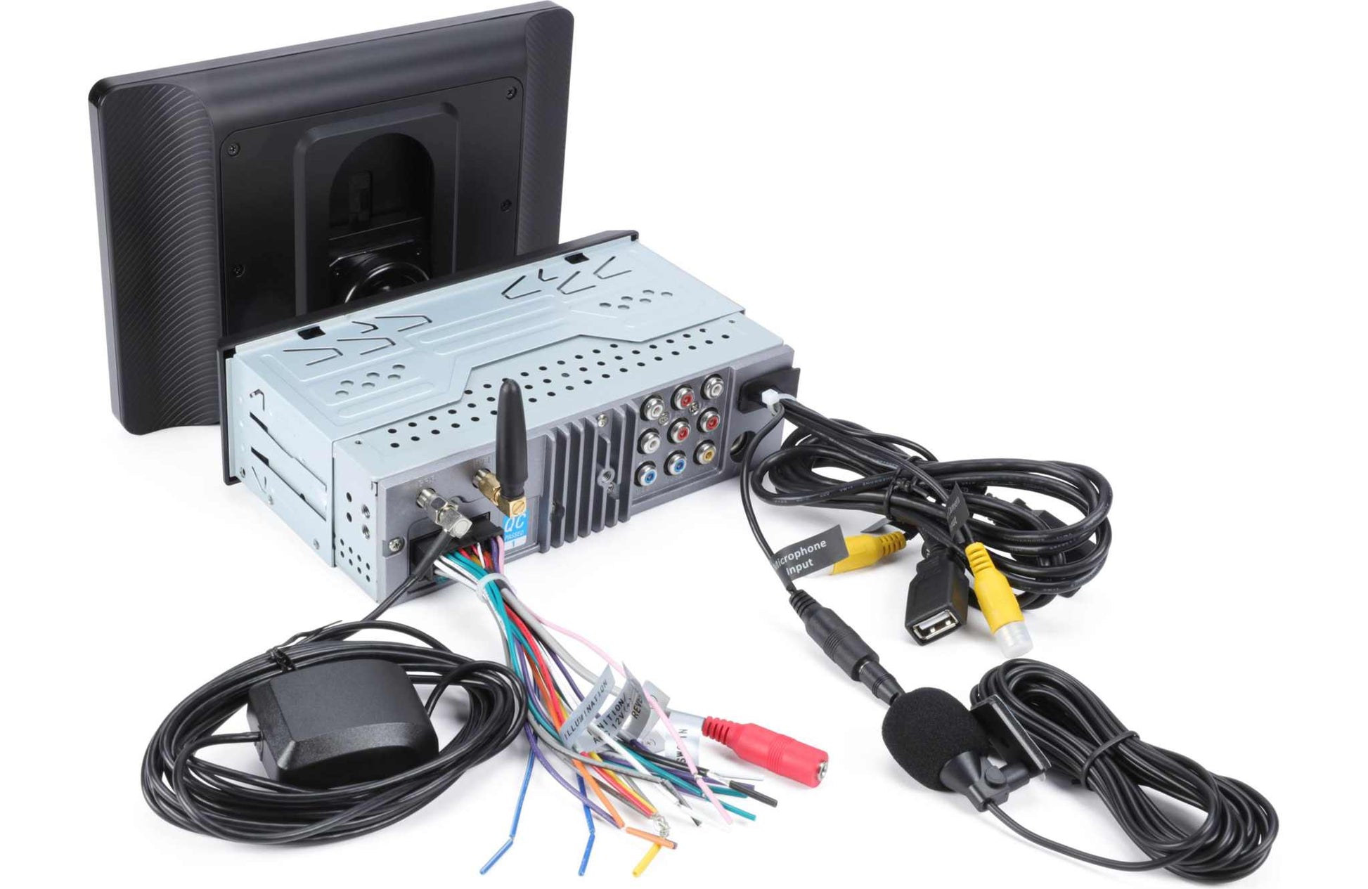 Safely answer and make calls from your receiver using touchscreen icons and the included microphone.