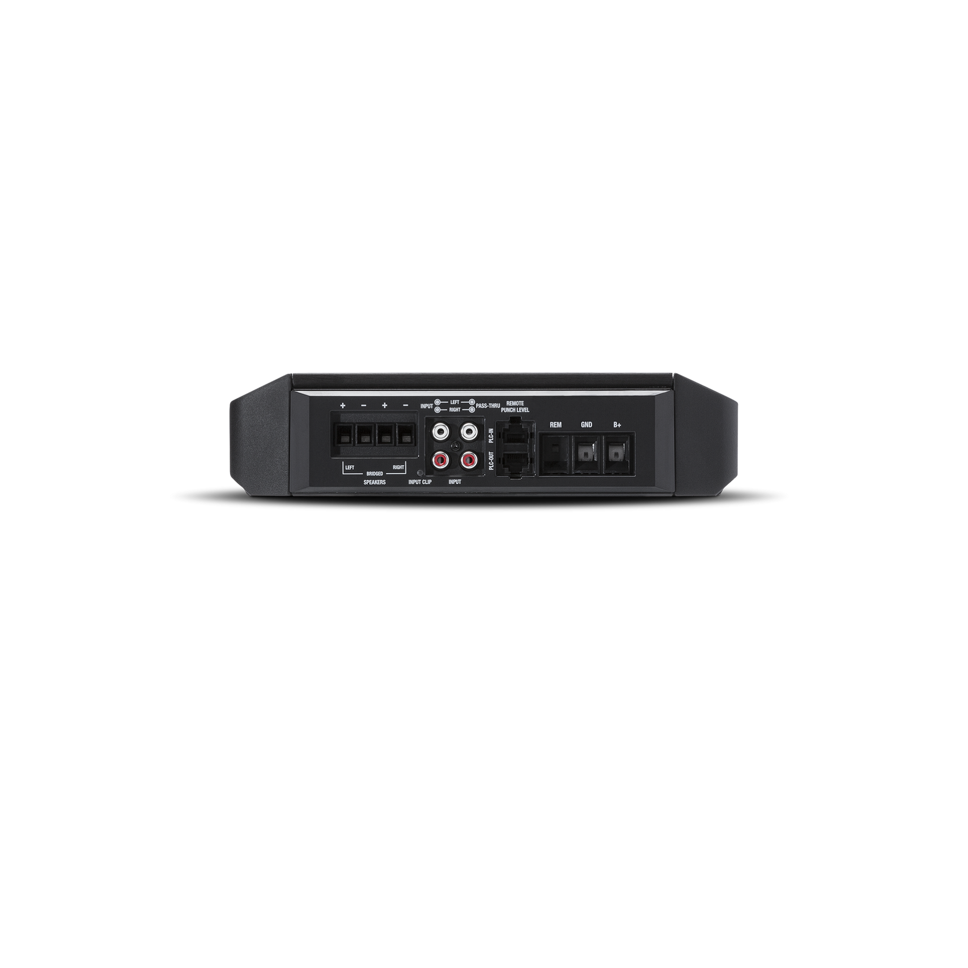 - Signal-sensing turn-on with speaker-level inputs eliminate need for remote turn-on lead