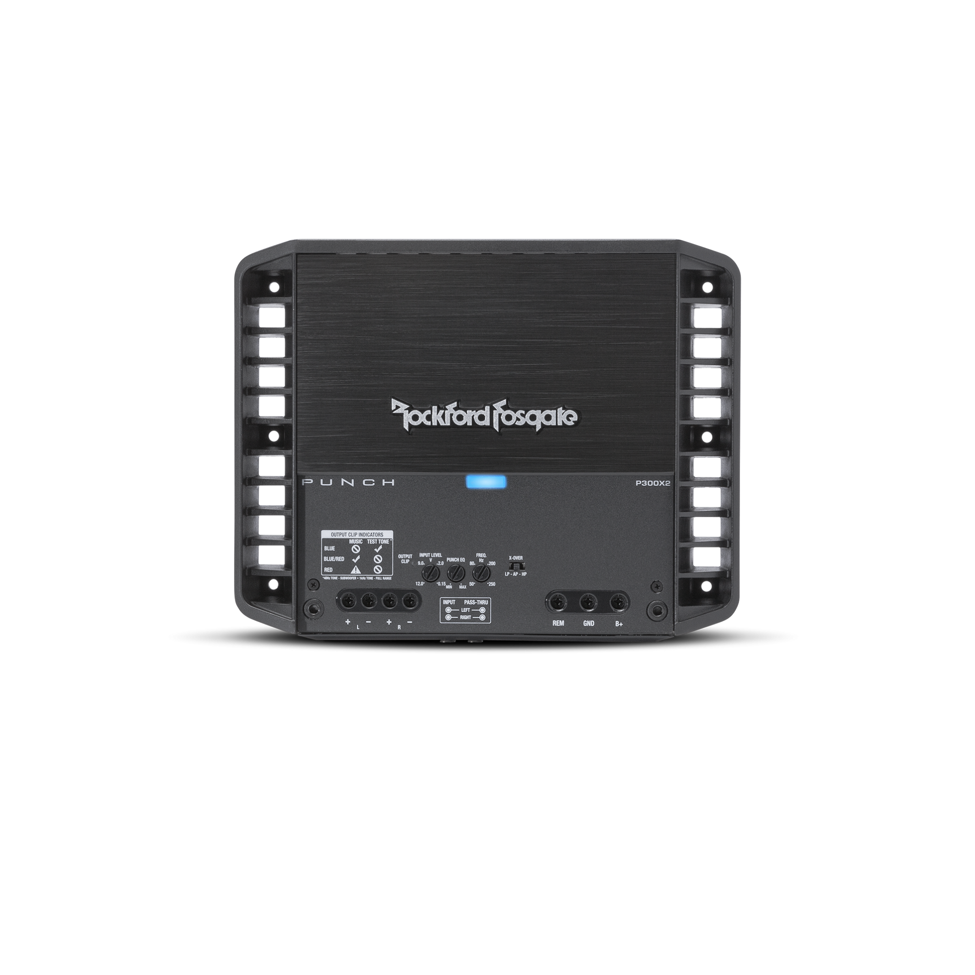 Rockford Fosgate's Punch P300X2 amplifier sends 100 watts RMS per channel to your speakers, filling your ride with clean music. You can use the high-pass filter to keep the low bass out of your speakers so they perform more efficiently. You can also switch this versatile amp into mono mode to drive a subwoofer with up to 300 watts RMS, then use the built-in low-pass filter to send the correct bass frequencies to your sub. The Punch EQ2 features bass and treble boosts, in case you want to add a little boom or sizzle back into the mix.