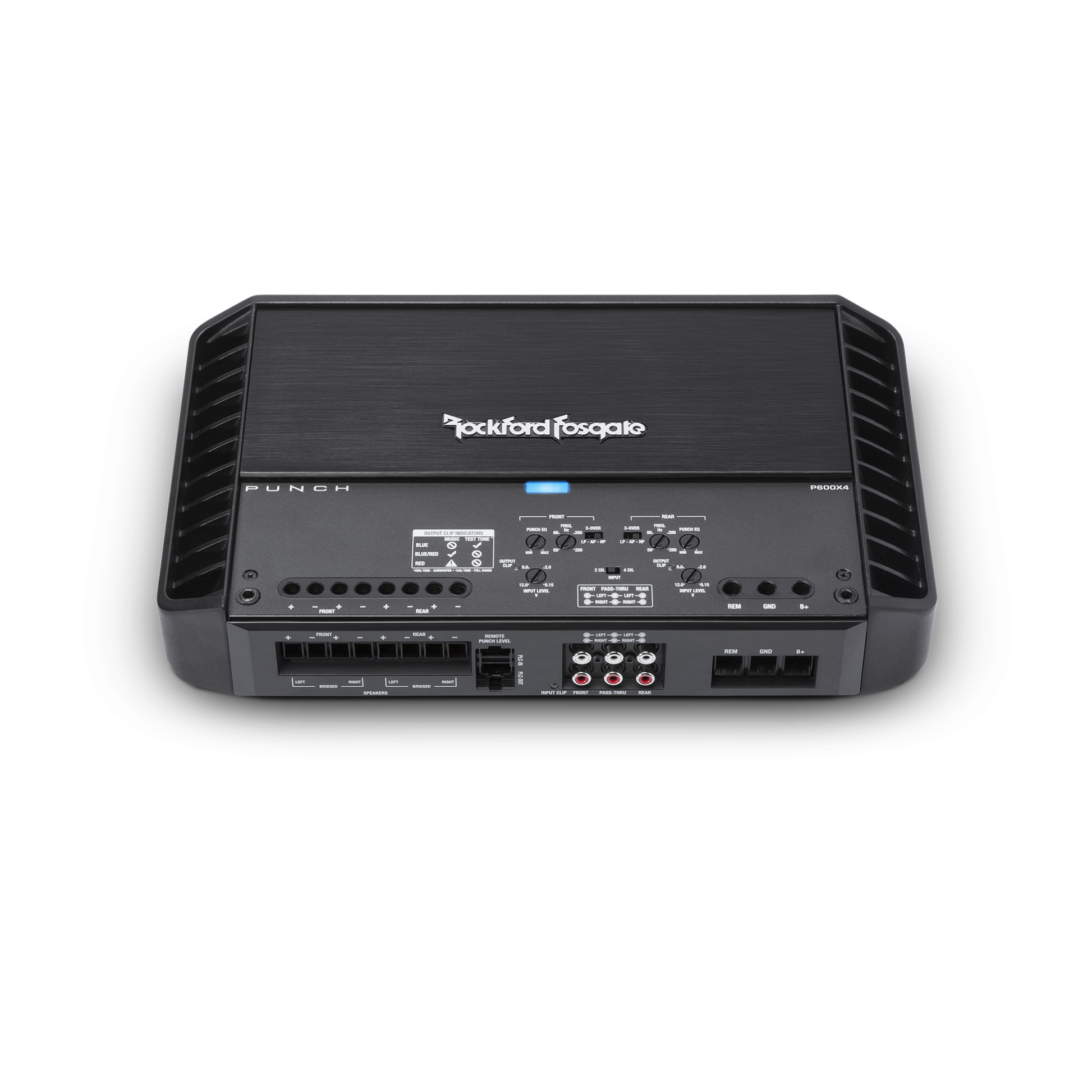 Rockford Fosgate's Punch P600X4 amplifier can put out 75 watts RMS to each of your front and rear speakers, plenty of power for clean music even at high levels. You can use the amp's high-pass filter to remove low bass from your speakers so they'll play more efficiently. You can also switch this amp into 2-channel mode to drive a couple of subwoofers with up to 300 watts RMS each. The amp's low-pass filter comes in handy for getting the right sound from your sub/enclosure combo. The Punch EQ2 includes bass and treble boosts, in case you want to add some boom and sizzle back into the mix.