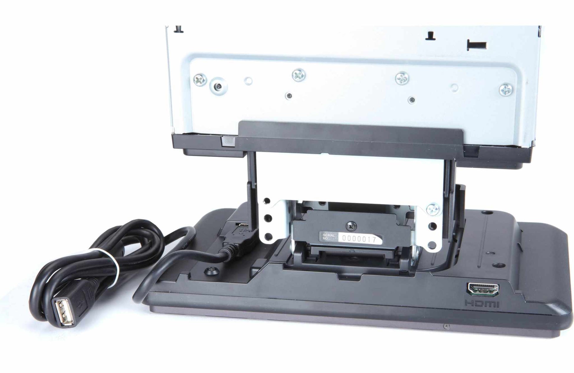 - Inputs: rear USB port, HDMI input, and rear-view camera input